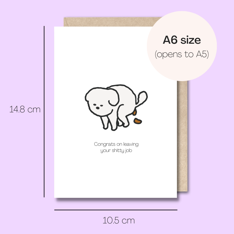 The card is 105mm wide x 148.5mm high (A6 paper size equivalent) when folded. When opened, the card is 210mm wide x 148.5mm high.